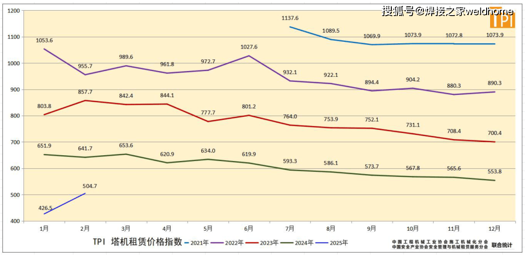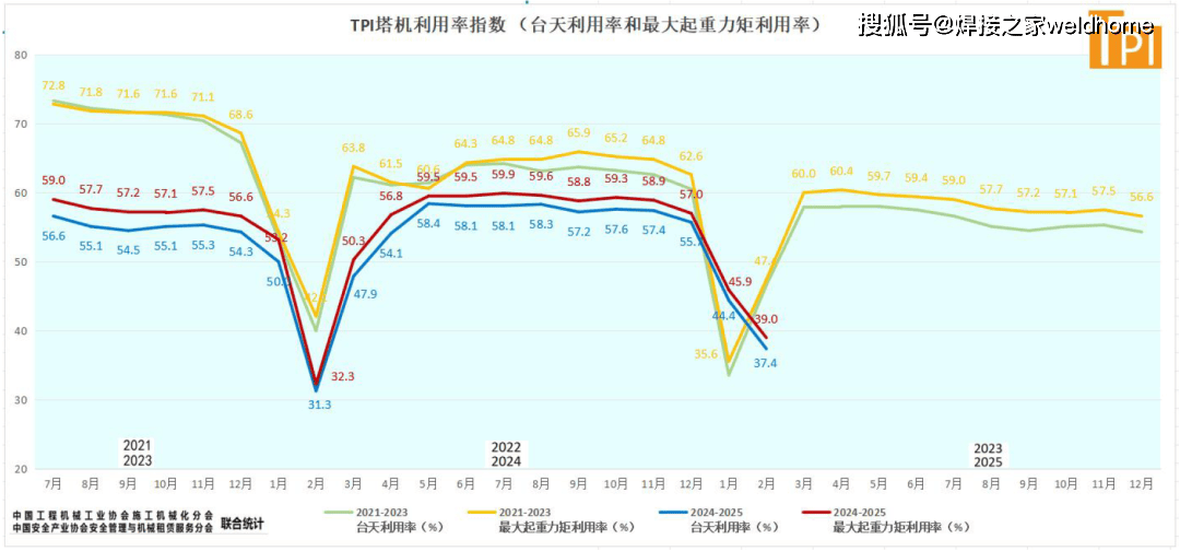 据中国工程机械工业协会施工机械化分会等统计的塔机租赁行业景气指数(TPI),2025年2月份塔机台天操纵率和最大起沉力矩操纵率较上月低7个百分点和6.9个百分点,前往搜狐,中国平安财产协会平安办理取租赁办事分会结合统计。但低于客岁同期137点。